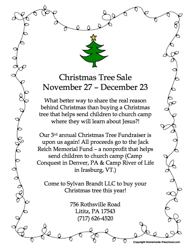 The holiday season is upon us and starting this weekend things are officially full flung Christmas (although I know some of you already have Christmas decorations up!) Starting this Friday, we will be selling Christmas Trees to benefit JRMF. All profit goes to help send children to church camp. We will be offering a variety of trees. All the trees are freshly cut and come with a hole already drilled in the bottom. We also sell tree stands if you are in need of a new one! This Friday we will be open until 6:00 p.m.!